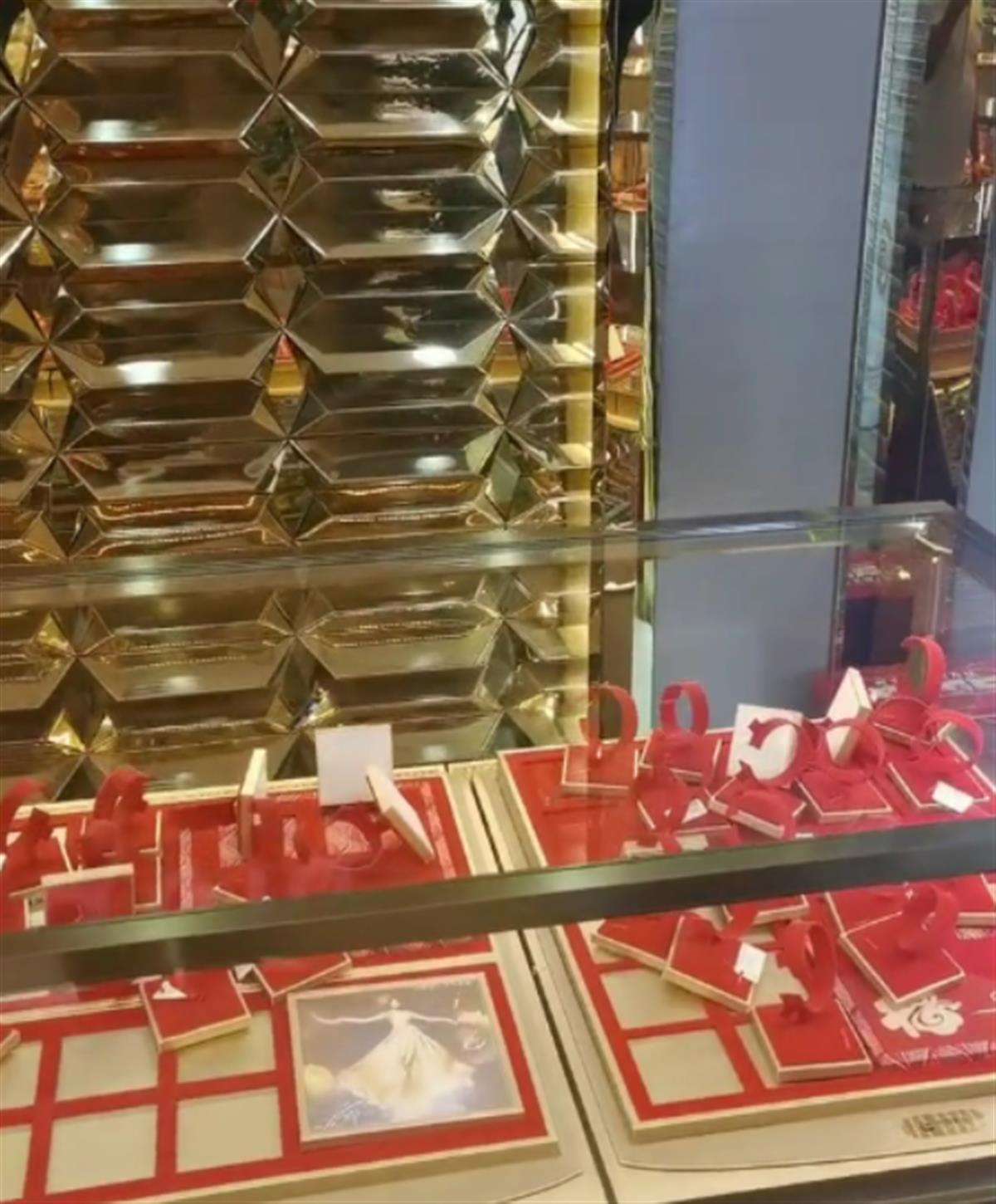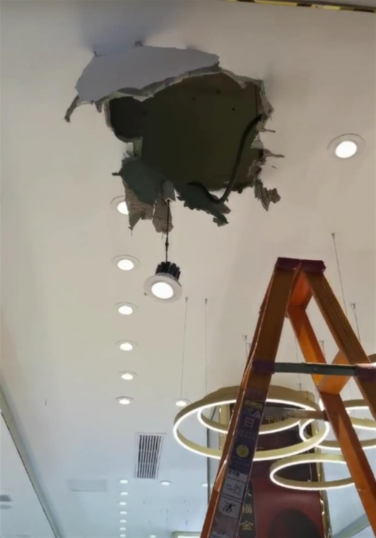 网传视频显示,贵州毕节市七星关区威宁路一家金店被盗,金店顶部吊顶出现两个大洞,洞口下立着一架人字梯,店内不少首饰被盗。