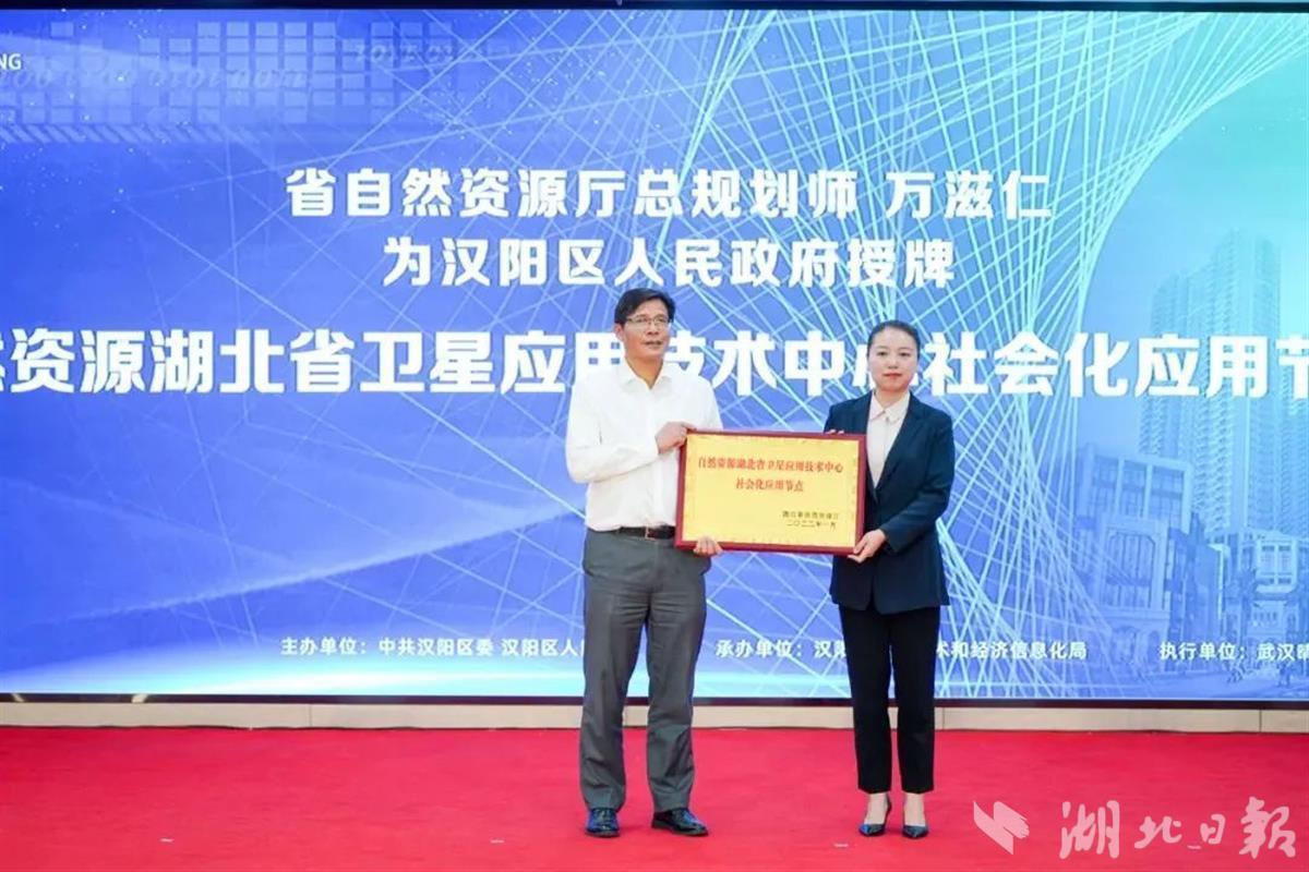 湖北日报讯(记者祝华、通讯员唐玥)5月12日,在武汉市汉阳区科技创新暨数字经济大会上,省自然资源厅总规划师万滋仁为湖北省卫星应用技术中心汉阳社会化应用节点授牌。