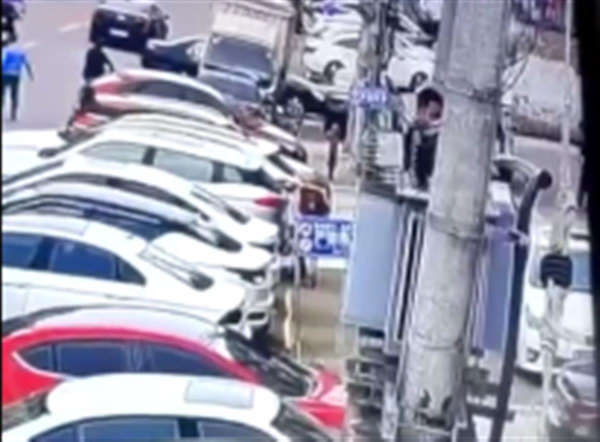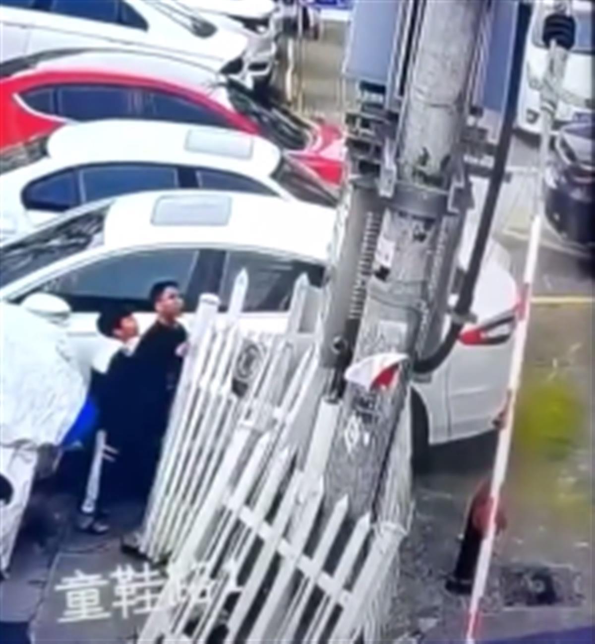 一段网络视频显示,两名小男孩走到一处围栏受损的变压器旁边,查看一番后,一名戴眼镜的男童开始攀爬变压器,但很快就摔下来。这名男童随后再次爬上变压器,当他爬上变压器箱上部后伸出手时,变压器上冒出几次火光,男童随后摔落至地面,其右手被烧伤。