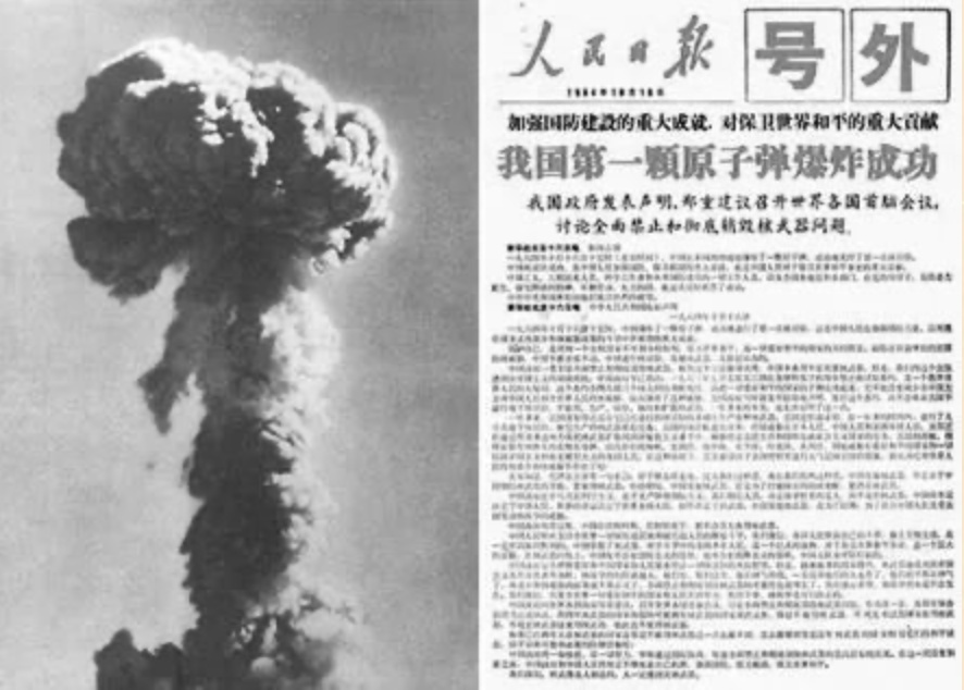 10月16日下午,原子弹在罗布泊爆炸成功,中国正式跨入有核国家行列。