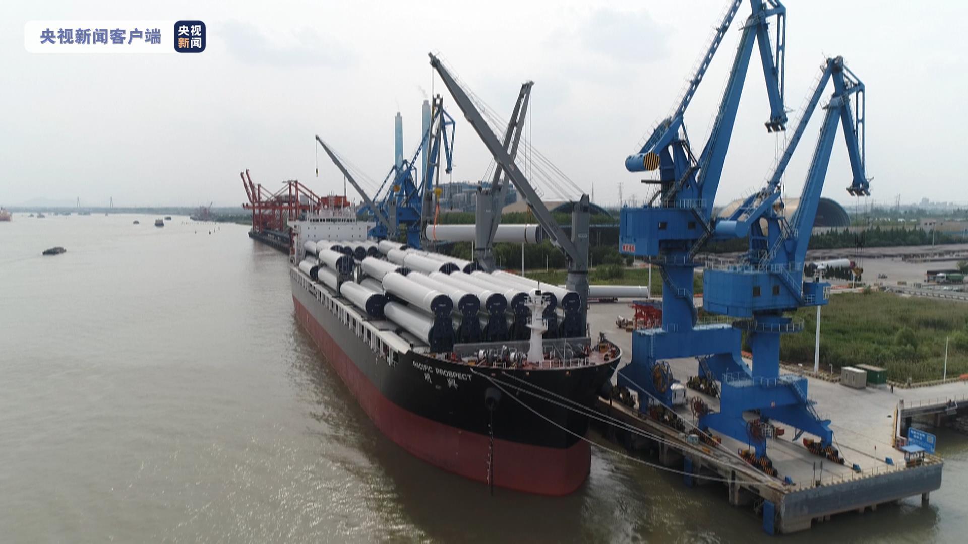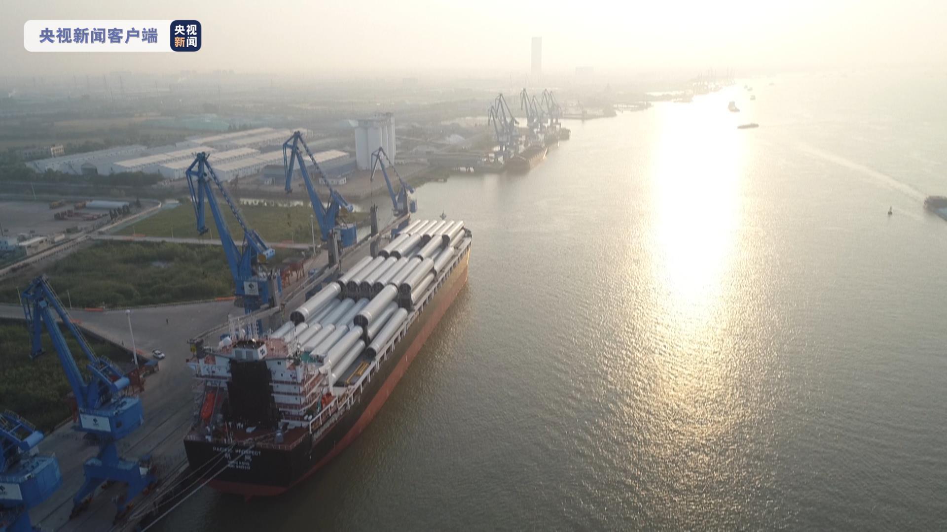 今天(5月16日)一大早,全球最大通用散杂货船“明兴”轮在江苏扬州港开启首航,此次搭载着6万方“扬州制造”的风电塔筒,远赴澳大利亚,为中国出口贸易贡献江苏力量。