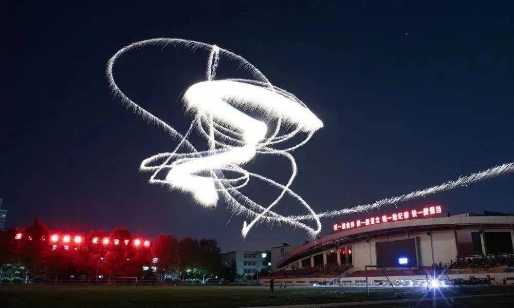 近日,由陆军工程大学石家庄校区,无人机创新实践俱乐部组织的“金戈健翮”无人机灯光秀——2022无人机夜航表演,拉开帷幕。夜幕下,无人机凌空飞起,在天空绘就绚烂图景。