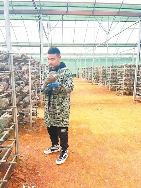 2020年12月,在部队历练3个春秋的李朗退役回乡。回乡20天时间,他马不停蹄,先后到镇退役军人服务站、镇人武部和村民兵连进行政策咨询,收集有关政策资料,有空就到哥哥建起的蘑菇基地转一转,并决定投身人工培植香菇项目。