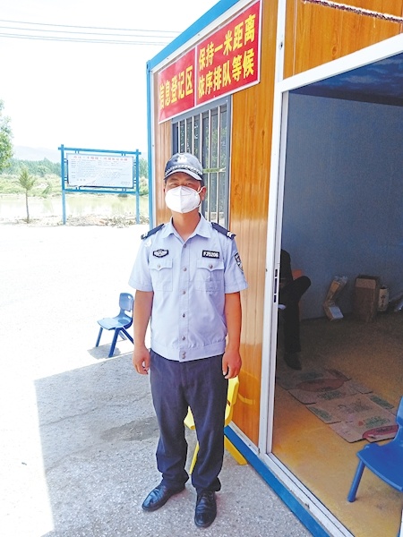 十堰市郧阳区退役军人柯有先在防控卡口值守。