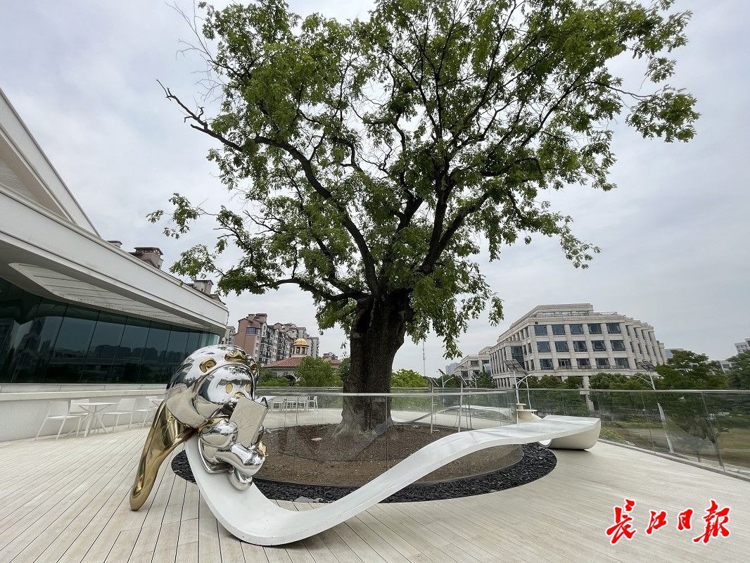 来到古树所在的第三层平台,这里通风透气,阳光充沛。树穴环绕着玻璃护栏,紧邻护栏的是一圈造型时尚的艺术桌椅,市民可以在此休憩、阅读,聆听古树的风雨沧桑,感受自然的宁静优雅。
