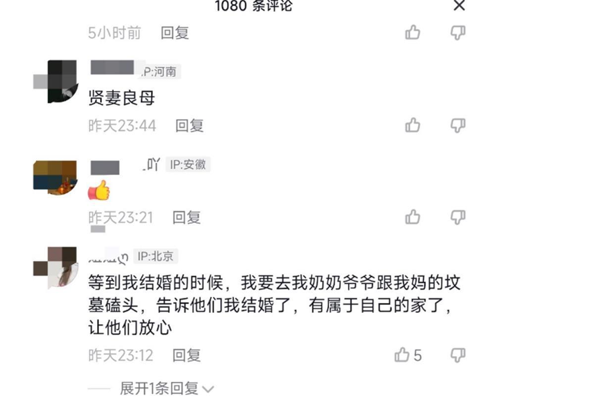 上述视频让不少网友泪目,有人评论道:“新娘非常懂事,我结婚的时候都没想起来去给我的妈妈磕头说一声,看到这个,瞬间泪流满面。”还有网友留言:“等到我结婚的时候,要去爷爷、奶奶和妈妈的坟前磕头,告诉他们我结婚了,有属于自己的家了,让他们放心。”也有部分网友在看过视频后,觉得新郎不懂事,认为新郎也应该像新娘一样磕头跪拜。