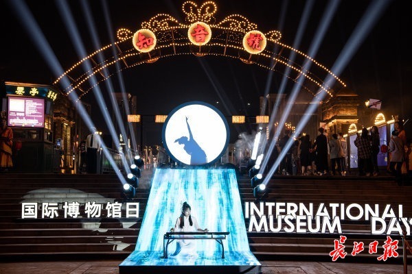 当晚,武汉知名文旅名片“知音号”迎来一批游客沉浸体验“移动的博物馆”。步入知音号码头,观众进入主题式沉浸空间,开启了博物馆之夜。在楚服装扮的掌灯人引导下,沿栈道移步换景。
