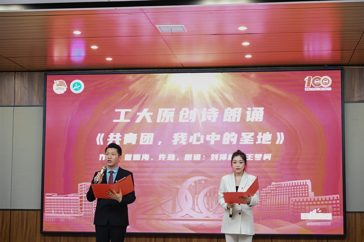 在武工大庆祝建团百年原创视频中,时间轴和历史影像再现了中国共产主义青年团波澜壮阔的百年奋斗历程;“我要一生清澈地爱着啊,我要长歌领着风踏着浪……”现场师生挥旗,同唱《光荣啊,中国共青团》以及团中央庆祝中国共产主义青年团成立100周年主题曲《有我》;“你是党的坚强助手,你是中国革命的生力军,你把热血和智慧献给伟大祖国,让共青团成为青年心中的圣地。”青年学子带来原创诗朗诵《共青团,我心中的圣地》,声声誓言铿锵有力。