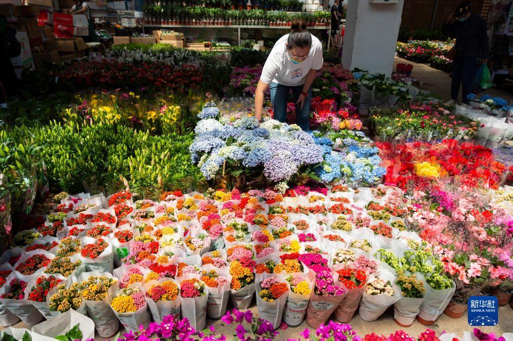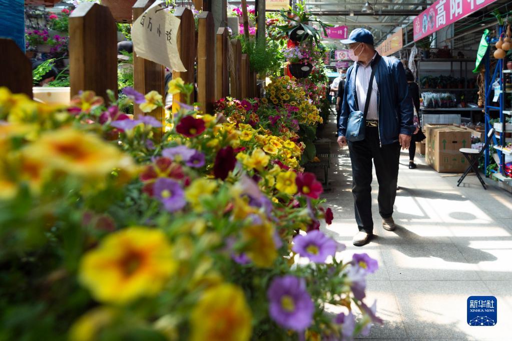 5月18日,市民在哈尔滨花卉大市场选购植物。