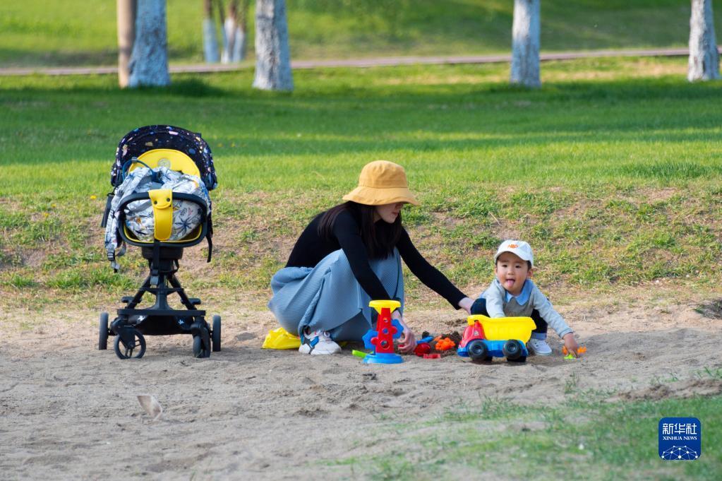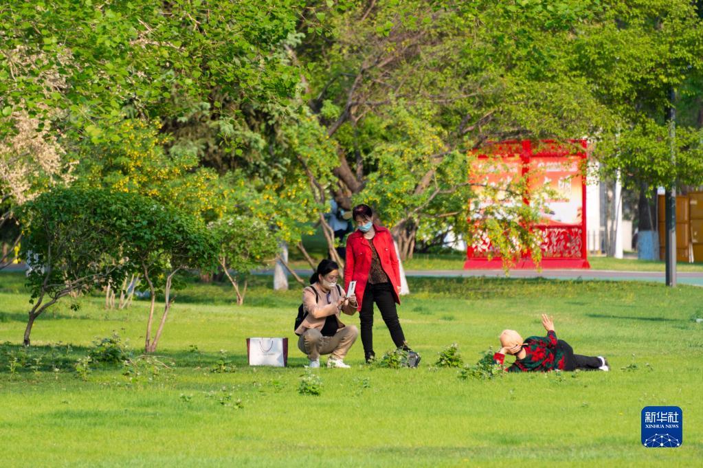 5月19日,市民在哈尔滨市香坊区一公园休闲游玩。