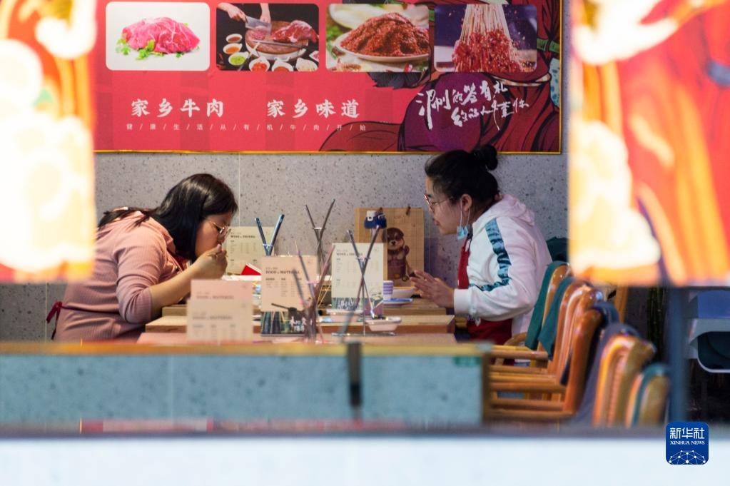 5月19日,市民在哈尔滨市香坊区一大型商场内用餐。