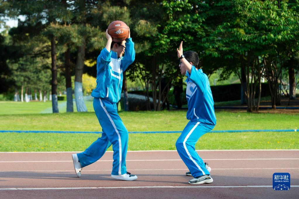 5月19日,市民在哈尔滨市香坊区一公园内玩篮球。