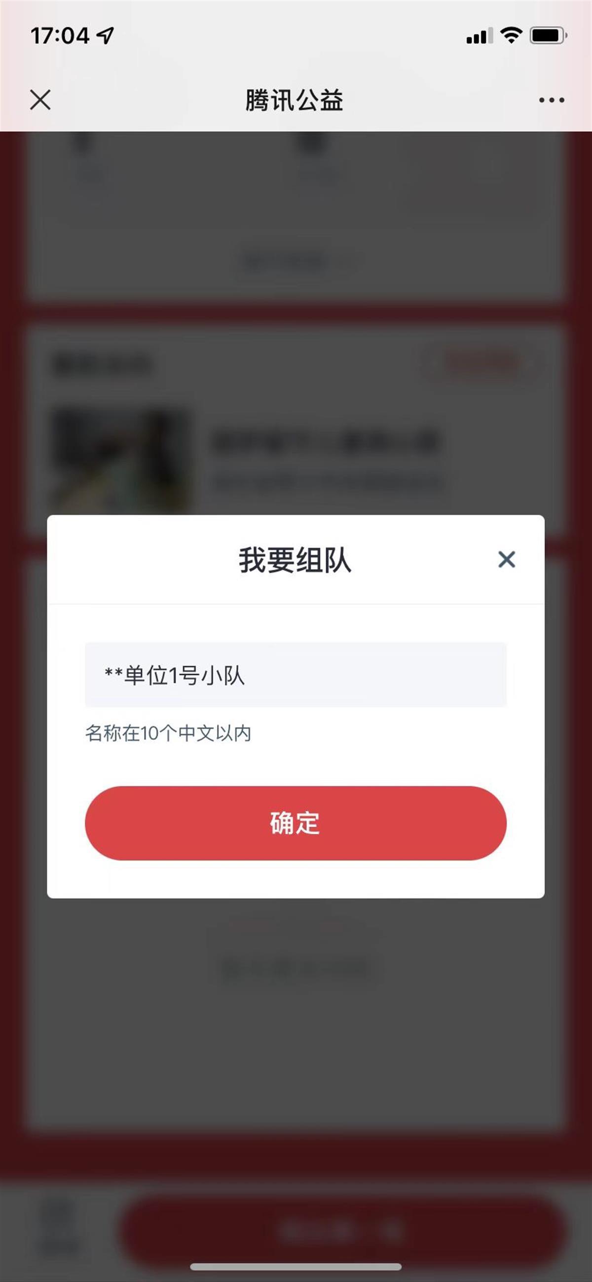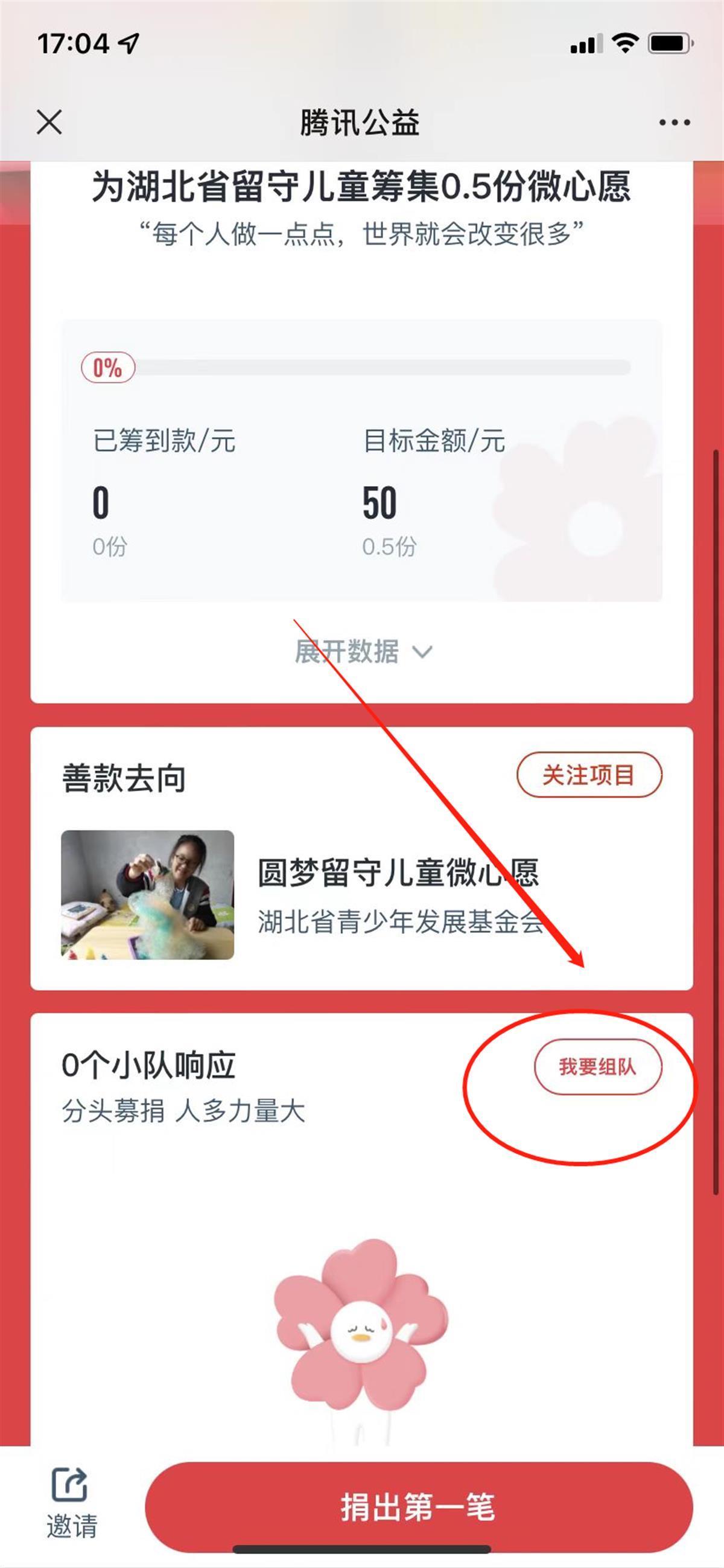 进入“一起捐”团队直接捐款,也可点击“我要组队”,自行命名确认后组成2级团队。