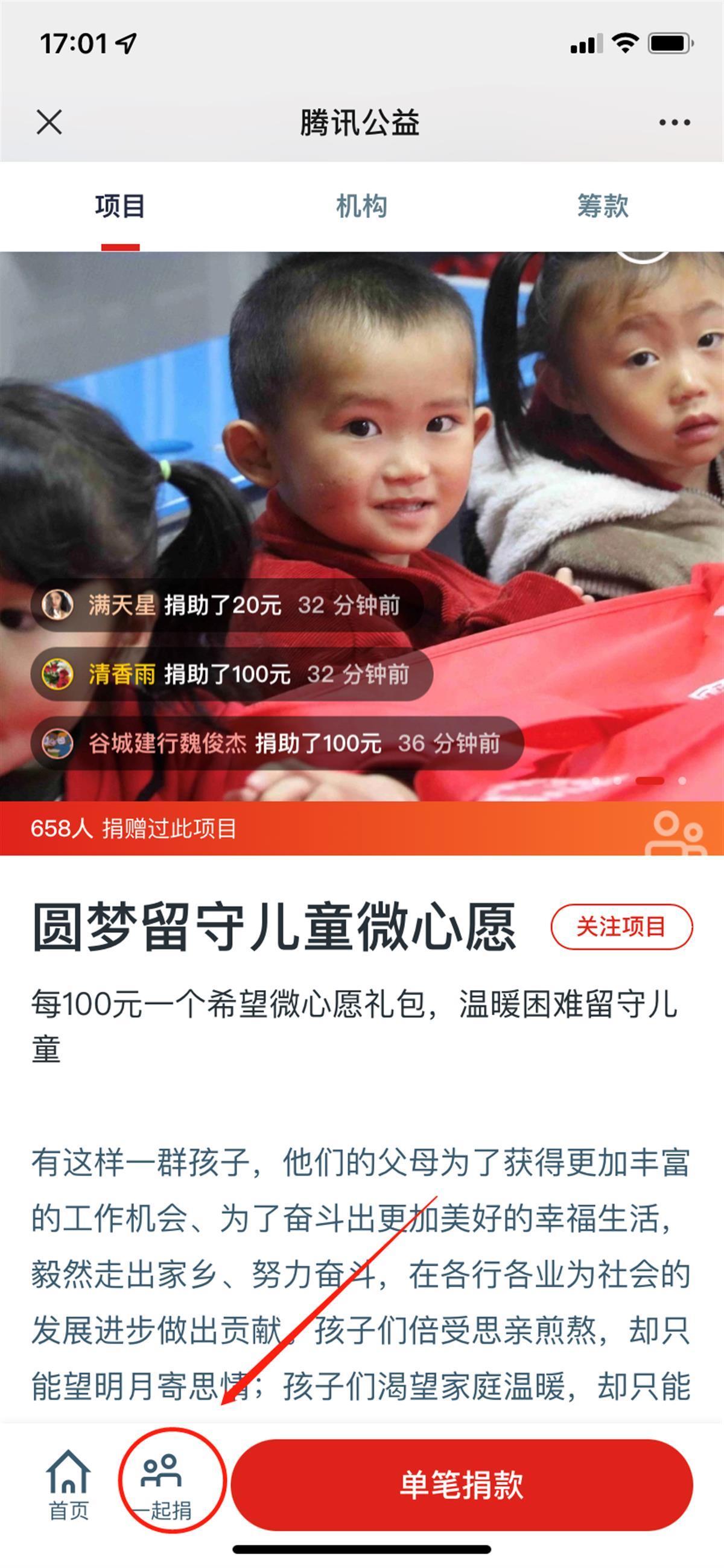 点击“一起捐”。