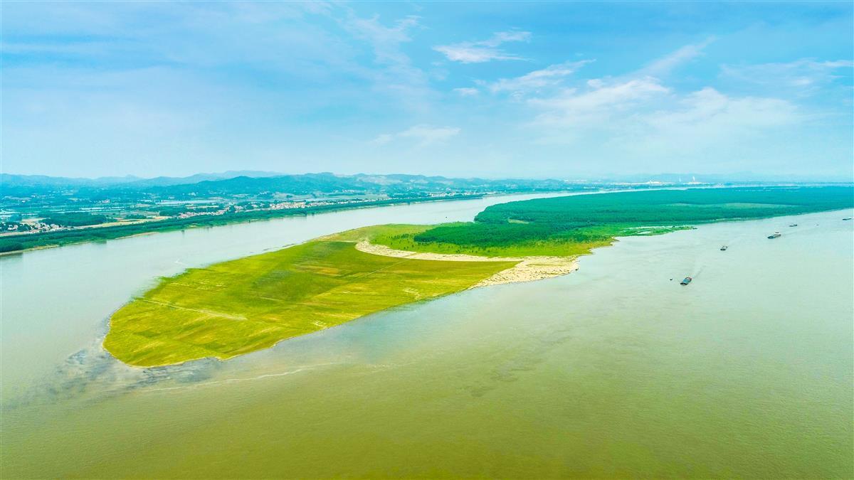 江边是最美岸线,江中沙洲染绿。在鄂州戴家洲,昔日“肠梗阻”滩段如今绿草茵茵,江鸥盘旋,成为65万平方米的生态涵养区。为建成这片绿洲,项目部将疏浚废弃的砂土吹填入相对低矮的滩体,种上耐淹性植被,形成大片滨江湿地。