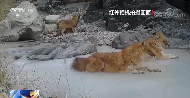 无独有偶,近日,甘肃安南坝野骆驼国家级自然保护区监测人员对回收的红外相机进行整理时,发现国家一级保护动物豺频繁活动。在画面里可以清晰地看到,豺三五成群在峡谷中来回走动,搜寻猎物。