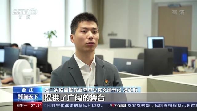 之江实验室智能超算中心党支部书记 汤志航:国家为青年科研人员成长提供了广阔舞台,敢于让我们挑大梁、当主角。我们会胸怀国之大者,承担起我们这一代人在实现国家科技自立自强事业上的历史使命。