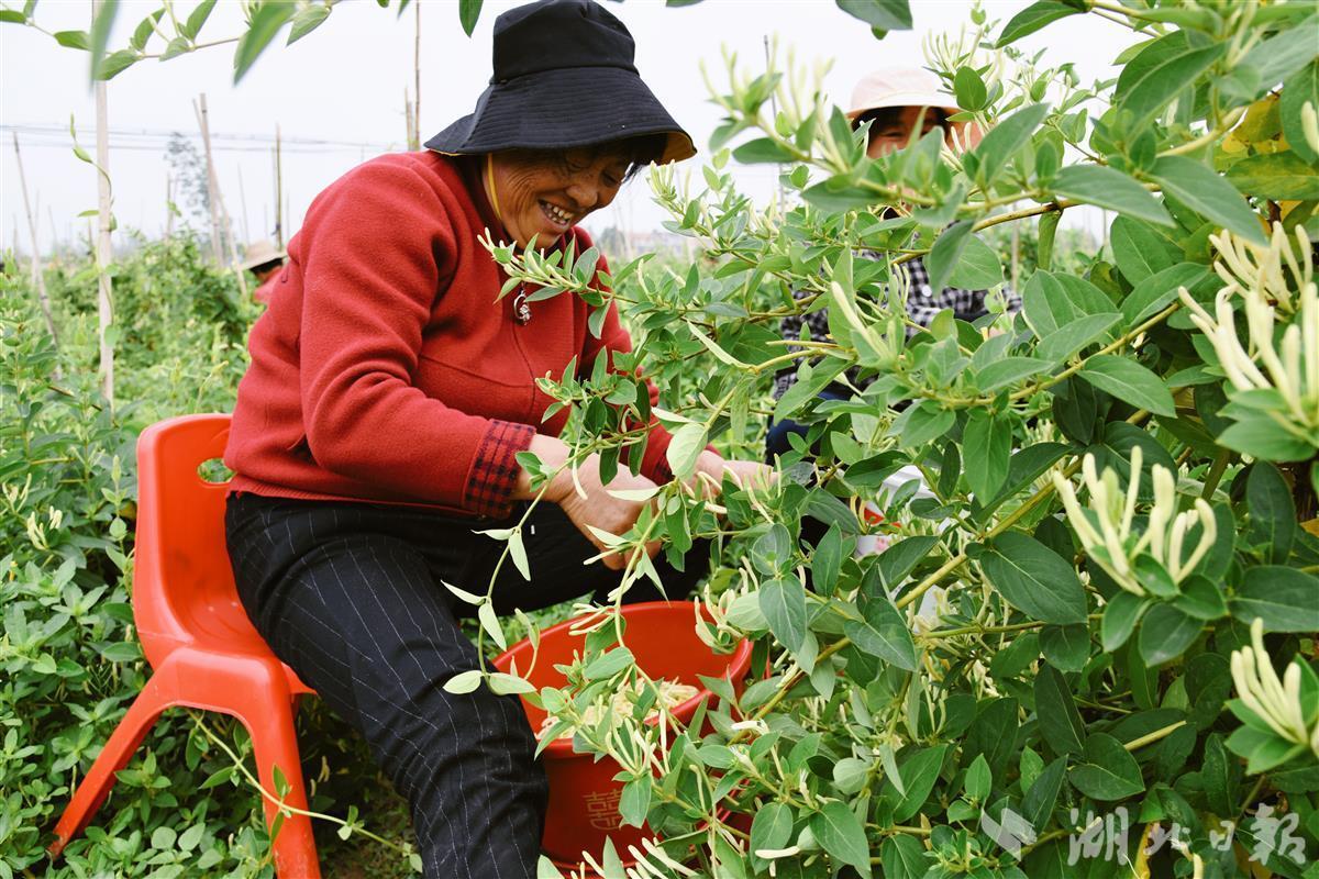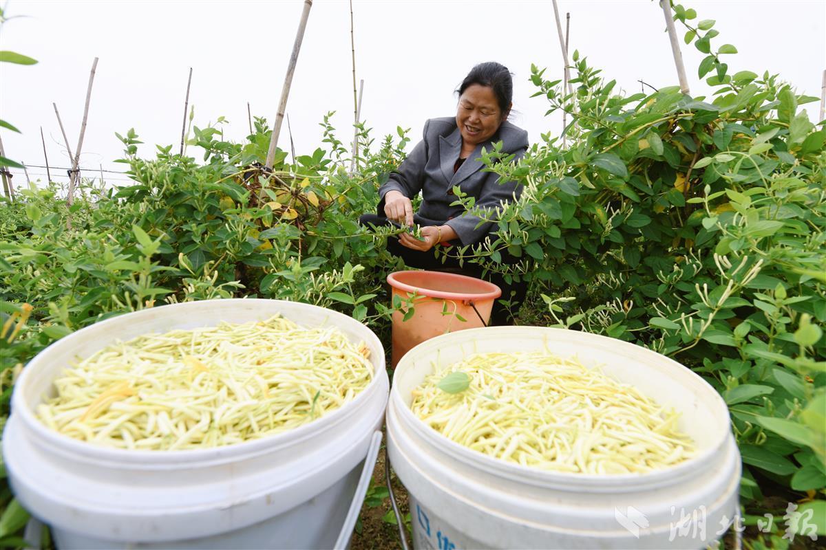 立夏之后,到了金银花采摘的时节。连日来,武汉市新洲区三店街坨坑村金银花基地里,当地村民正忙着采摘金银花,一派喜人的丰收景象。一朵朵金银花叩开致富之门,为村民带来“真金白银”,变成村民的“幸福花”。