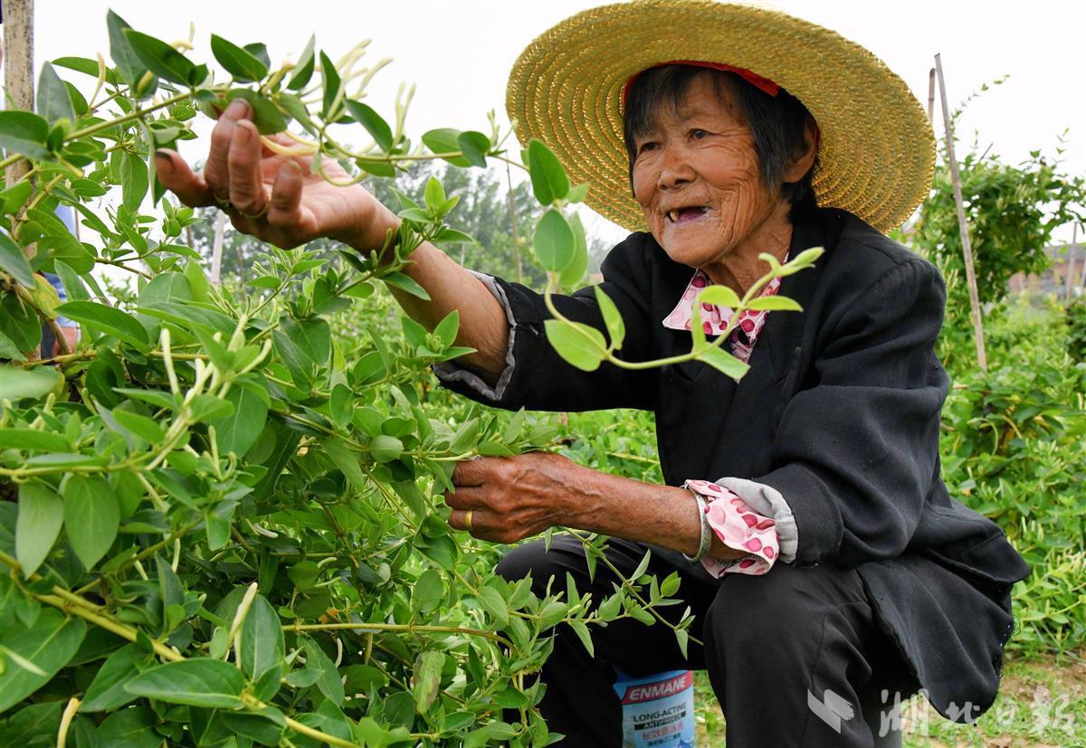58岁的胡柳英是坨坑村村民,自从村里发展金银花产业后,每年施肥、除草、采摘季,她都来到基地打工。像她这样就近摘花就业的村民每天有百余人,每人有80元至100元不等的收入,采摘后现场称重、领工钱。“我们在这里工作,离家又近,一年能赚一两万元。”胡柳英笑着说道。