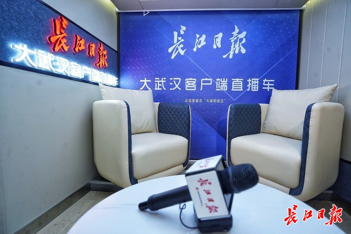 长江日报5G高清直播车还搭载了移动直播间,让直播车能在多种场景下使用——直播间内,嘉宾一一入座,侃侃而谈;直播间外,天幕伸出、圆桌架起,思想碰撞。长江日报还将结合具体活动,持续邀请市民们进入移动直播间,过一把“主播瘾”。
