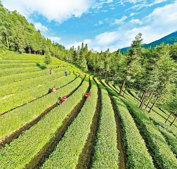 5月19日,宜昌市长阳土家族自治县青岗坪村茶园内,村民正在采摘新茶。青岗坪村是武汉铁路局集团公司定点帮扶村,武铁先后投入200多万元建设青岗坪村茶厂,投入15万元建设茶叶基地,帮助该村成立“青岗翠绿”茶叶专业合作社,新建标准茶园1080亩,改造老茶园2000亩,帮扶村民走上致富路。 (湖北日报全媒记者 刘曙松 通讯员 覃丹 摄)
