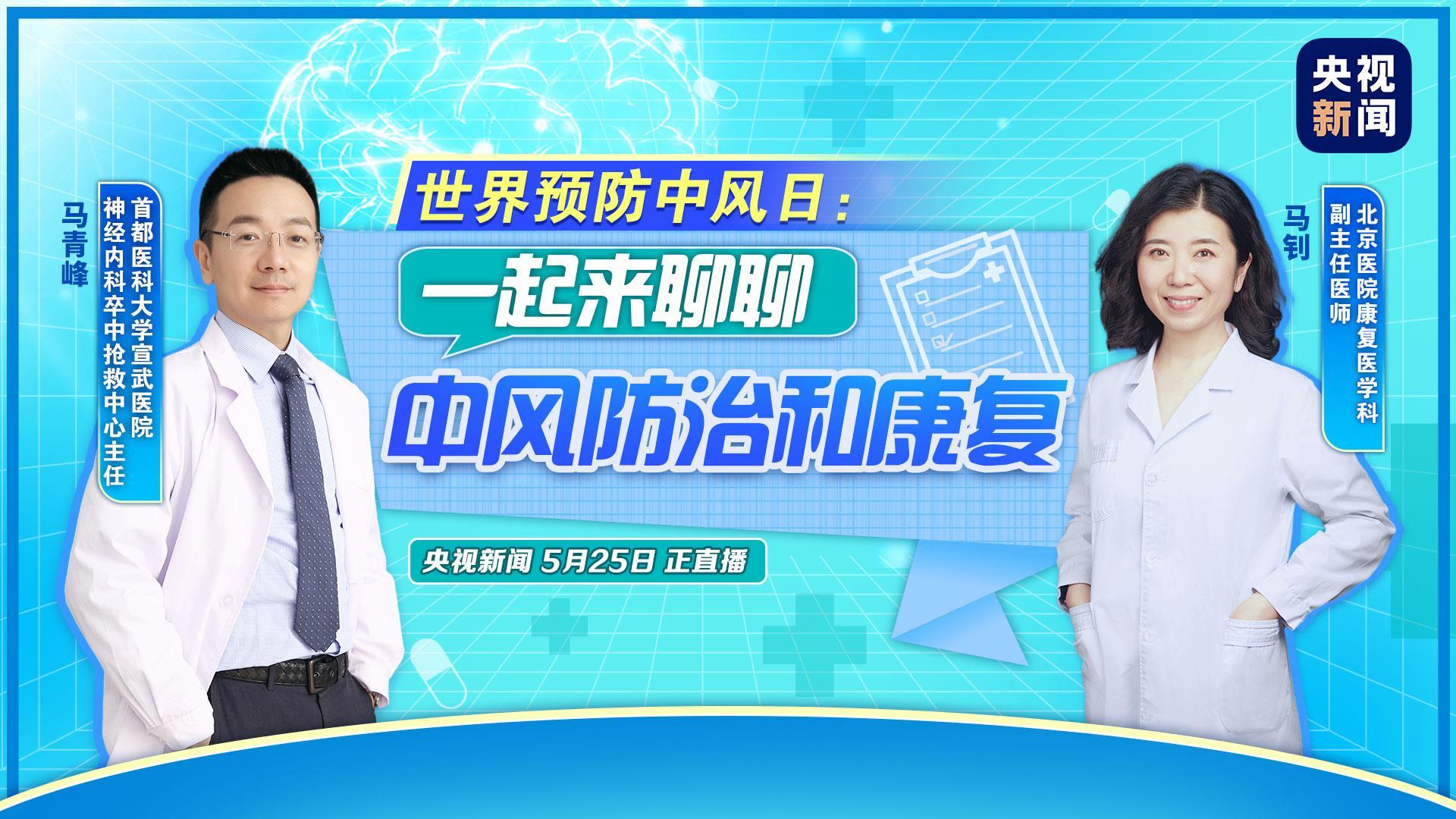 5月25日,央视新闻《医学公开课》连线首都医科大学宣武医院神经内科卒中抢救中心主任马青峰、北京医院康复医学科副主任医师马钊,一起聊聊中风的防治和康复。详情见>>