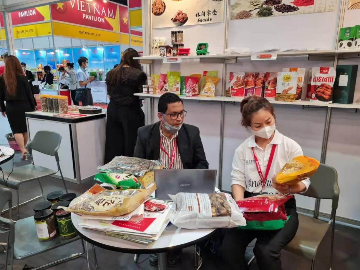 在今天开幕的泰国曼谷国际食品展上,湖北省商务厅为企业在现场打造了“中国湖北、荆楚食品”的展团形象,组织了包括安琪酵母、随州品源、裕国菇业、随州常盛、襄阳三珍等20余家湖北外贸品牌企业参加,产品涵盖干制食用菌、休闲食品、烘焙酵母、食品调味剂等。采购商现场直观了解展品信息,供采双方即时远程洽谈。展会于北京时间上午12点正式开幕后,湖北展区人头攒动,特色、优质的产品吸引了众多采购商的关注。展会第一天便接待了来自泰国、马来西亚、越南等国家的五十余名专业买家。其中,襄阳菌生园生态食品有限公司的产品一个上午就结识了八位意向买家,销路喜人。通过线上连线深入洽谈,买家详细地询问了干菇腿等产品的具体信息后,初步达成了20万美金的采购意向。展商表示非常感谢省厅组织此类线上与线下相融合的展会活动,利用数智手段赋能外贸,为受疫情冲击影响下的企业带来了新的希望。