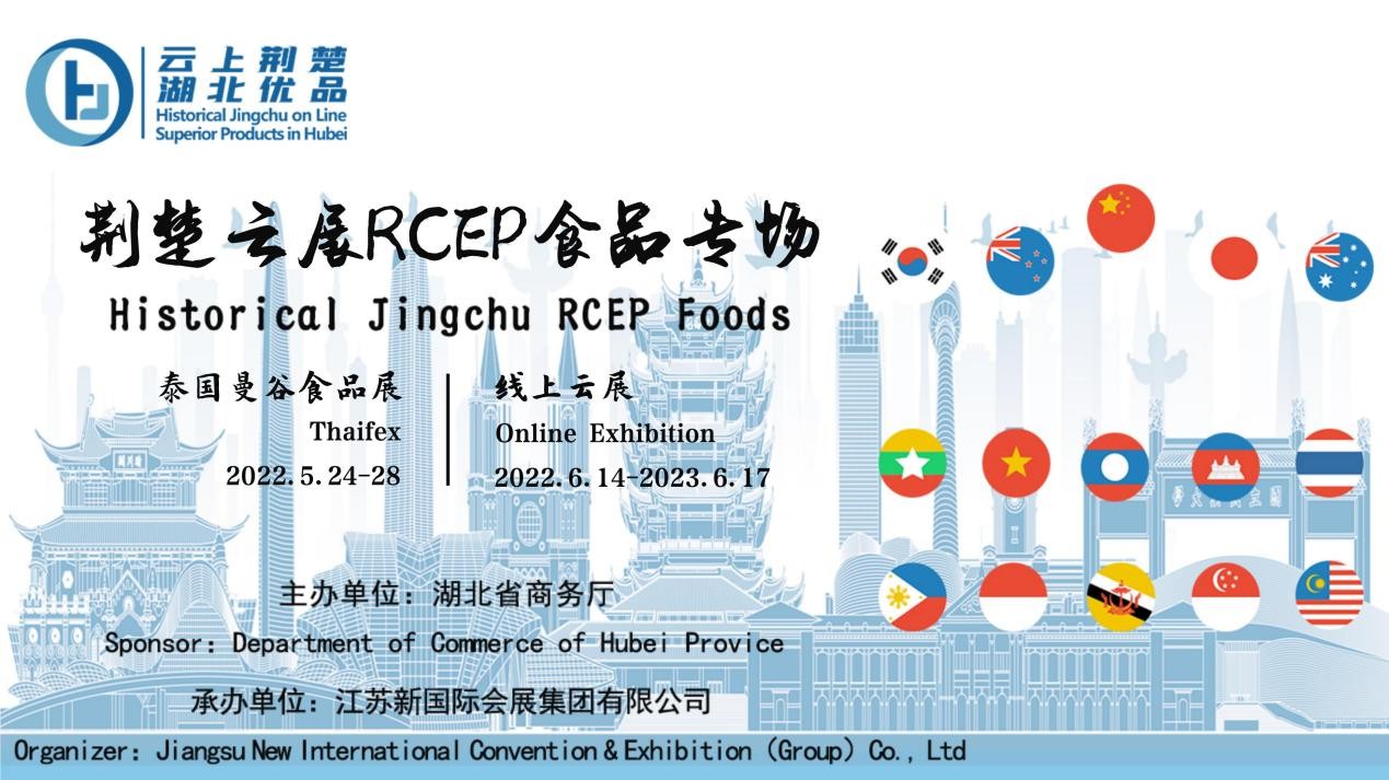为贯彻落实湖北省政府有关稳外贸文件的精神,推动外贸工作高质量发展,由湖北省商务厅主办,江苏新国际会展集团有限公司承办的“2022荆楚云展—RCEP之食品专场”专项活动已于5月24日正式启动。活动共组织50余家湖北品牌企业抱团出海,包含了5天泰国曼谷食品展线下代参展、4天线上精准匹配及后续1年楚贸通平台展示配对等内容,旨在帮助企业多渠道、多方式开拓国际市场,扩大与RCEP各成员国的经贸合作,提高国际市场竞争力。