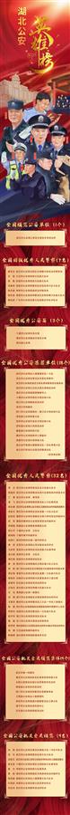 此次表彰,武汉市公安局江岸区分局百步亭派出所被授予“全国模范公安单位”荣誉称号;武汉市公安局汉阳区分局晴川街派出所教导员廖宗安等7名民警,被授予“全国特级优秀人民警察”荣誉称号;十堰市公安局东岳分局等3个单位被授予“全国优秀公安局”称号;省公安厅高速公路警察总队一支队孝感大队等18个单位,被授予“全国优秀公安基层单位”称号;宜昌市公安局信访处处长章红艳等32名民警,被授予“全国优秀人民警察”称号;巴东县公安局绿葱坡派出所等9个单位,被授予“全国公安机关爱民模范集体”称号;枣阳市公安局刑侦大队教导员董杰等9名民警,被授予“全国公安机关爱民模范”称号。