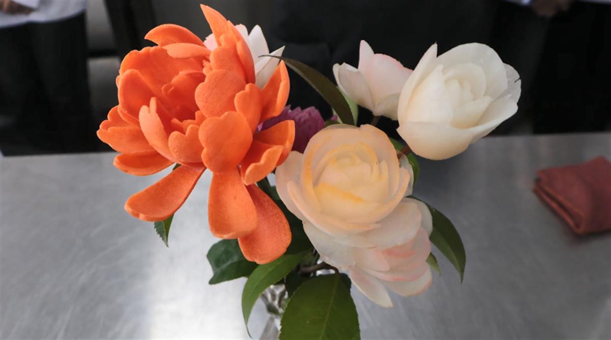 “比如520这一天,情侣到餐厅吃饭,我用食材雕一朵玫瑰花送给他们,这是食材的隐性价值,最终会变成市场美誉度。”唐兵进一步解释,比如食品展览会,总是龙凤鱼,技术再高也体现不出有“绝活”,即与众不同,这是一种宣传效应;再比如,某地的食材、药材类特产,雕出各种花样,只要解决了保质期问题,就会增加这些农副产品的艺术品味,提高其艺术价值和文旅美誉度。