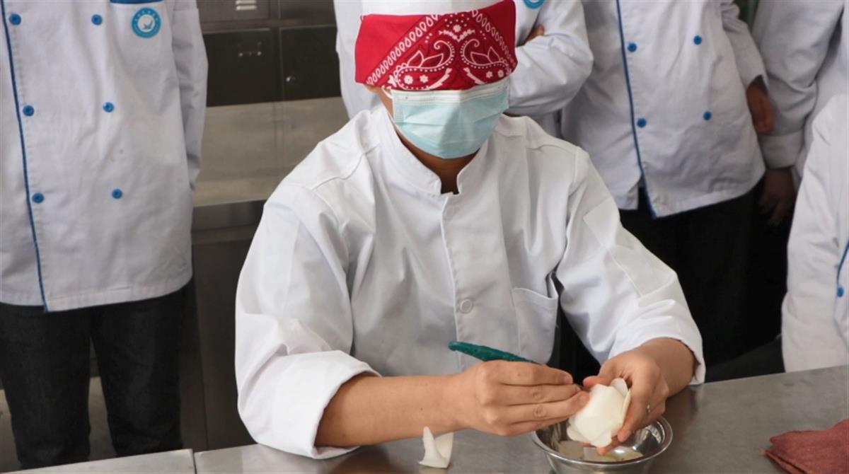 “具体到食材雕花这门课,就是要在打好基础后,再不断升华。比如每个学生要先从常见的龙凤鱼开始,从主菜的配饰开始,这些都是基本功,必须练扎实了,才能有感觉、有体会、有思考、有创新。”唐兵说。