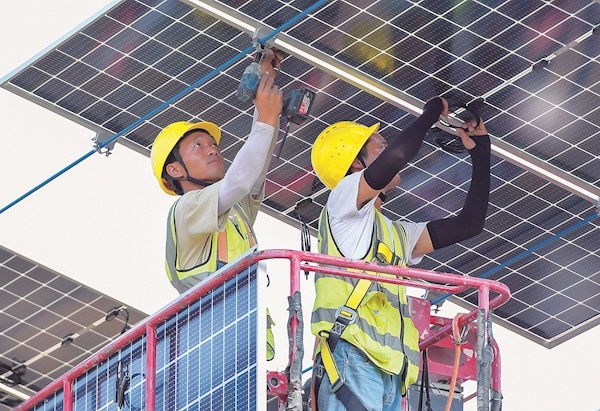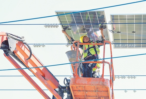 25日,经过2个月的紧张施工,位于青山区的北湖污水处理厂,工人正在安装最后一个区域的太阳能光伏板。预计只需要最后几天,54000块光伏板将全部安装到位,并具备局部并网发电条件。