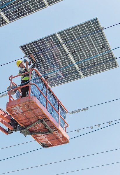 24日下午,阳光充沛,极目新闻记者走进厂区看到,一片片光伏板正迎着太阳的方向,在下方的空间里留下一道道光影,犹如跳动着的音符。光与电,就在这之间产生了奇妙的变化。