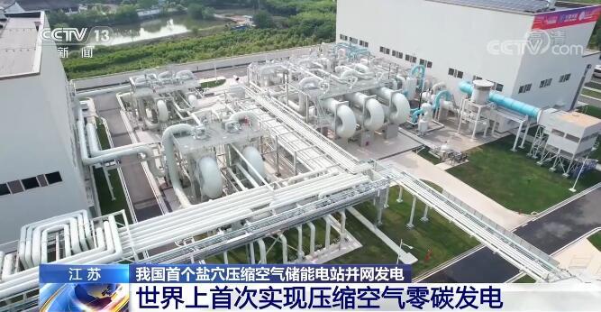 这就是刚刚并网发电的储能电站,它不烧煤也不烧天然气,而是靠压缩空气来推动发电机旋转发电,提供动力的空气就来自电站地下的盐穴里。