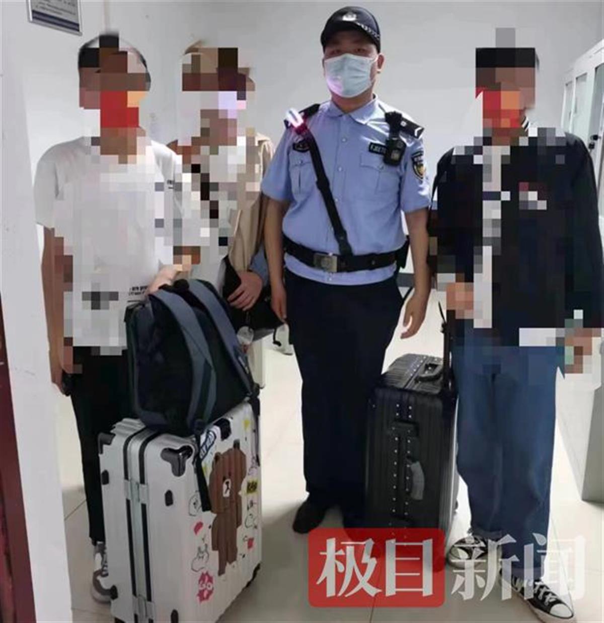 三小伙次日取回忘拿的行李物品(武汉地铁警方供图)