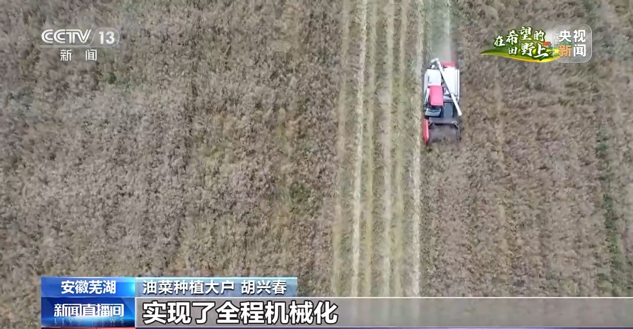 眼下又到了油菜收割季节,在安徽省油菜全产业链示范创建基地芜湖市湾沚区,当地农户抢抓晴好天气,全力收割成熟油菜,确保颗粒归仓。