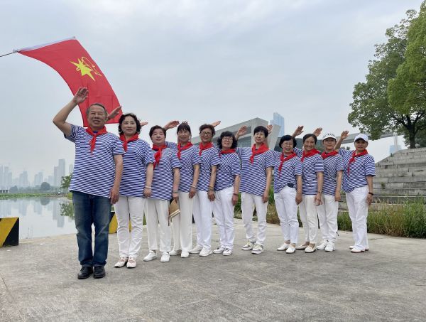 长江日报大武汉客户端5月27日讯 27日上午,武汉琴台剧院旁,一群平均年龄65岁的老人翩翩起舞,迎接属于自己的“六一儿童节”。