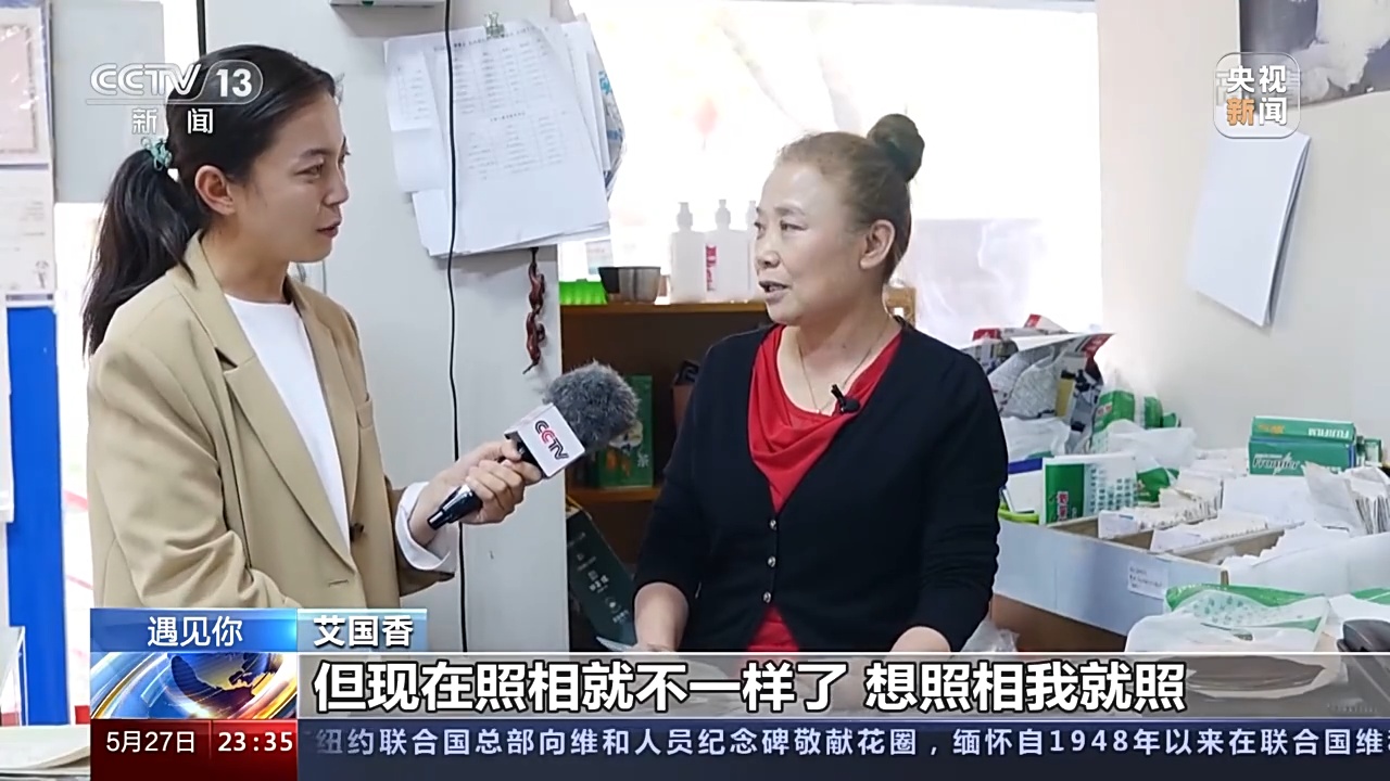 顾客 杜红:从八几年到现在,就从我记事,只要照相就在她家。路过她这,不管坐车也好,走路也好,都会扭头看一下,有时候还会进来坐一坐。