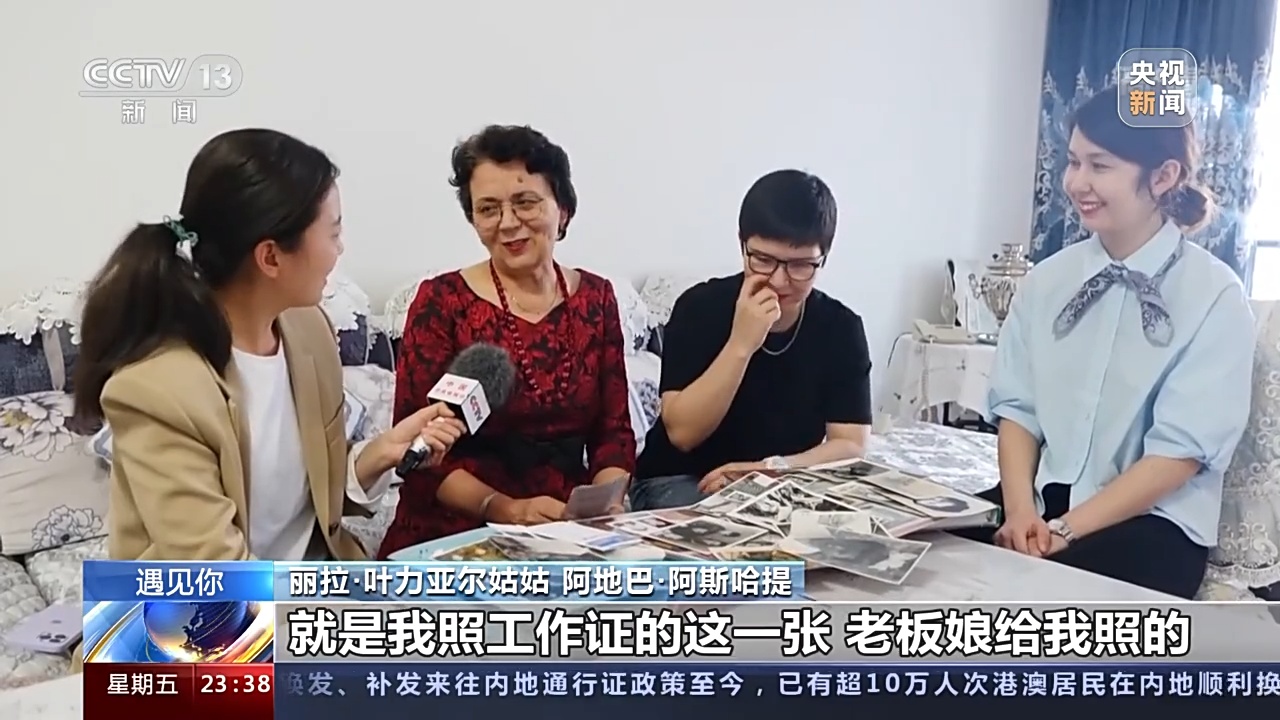 丽拉·叶力亚尔姑姑 阿地巴·阿斯哈提:我在那照的最早一张,就是我照工作证的这一张,老板娘给我照的,我记得特别清楚这张照片,穿衣服也没穿对,他们就说不要着急不要着急,我帮你找了一件衣服,就是他们给我找的衣服。