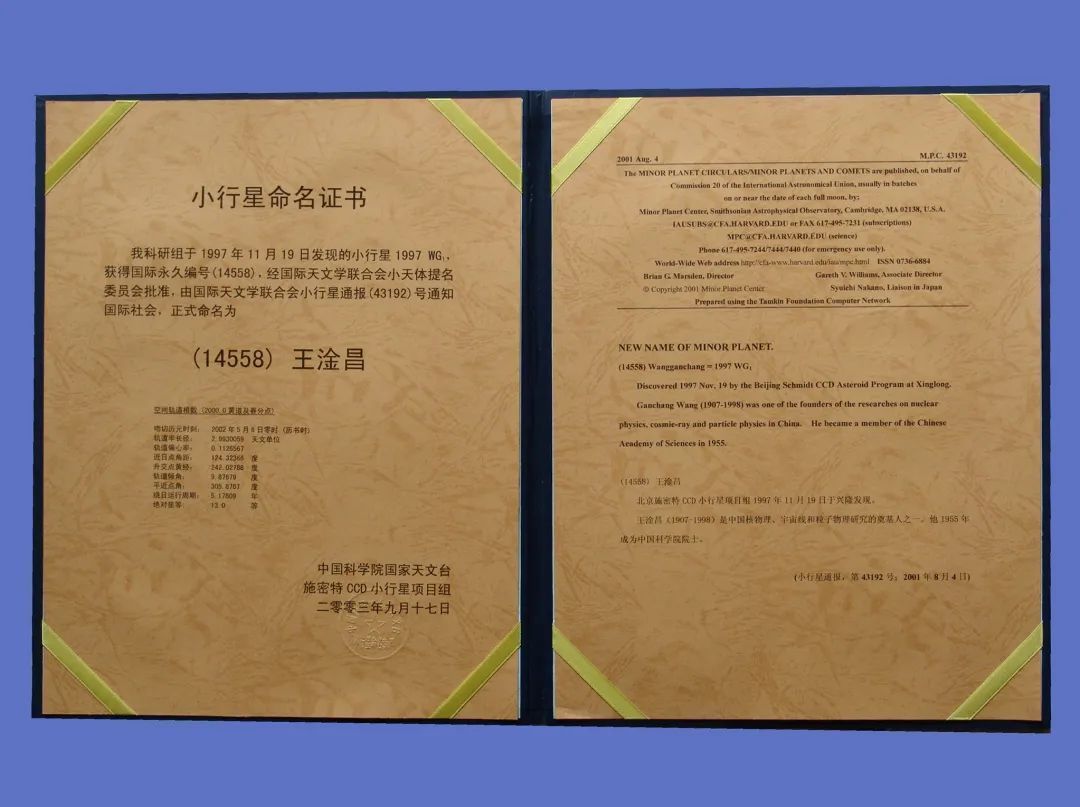 1998年,91岁的王淦昌在北京逝世。2003年,国家天文台将一颗小行星命名为“王淦昌星”。在他诞辰115周年的今天,这颗“星”依然格外闪耀。