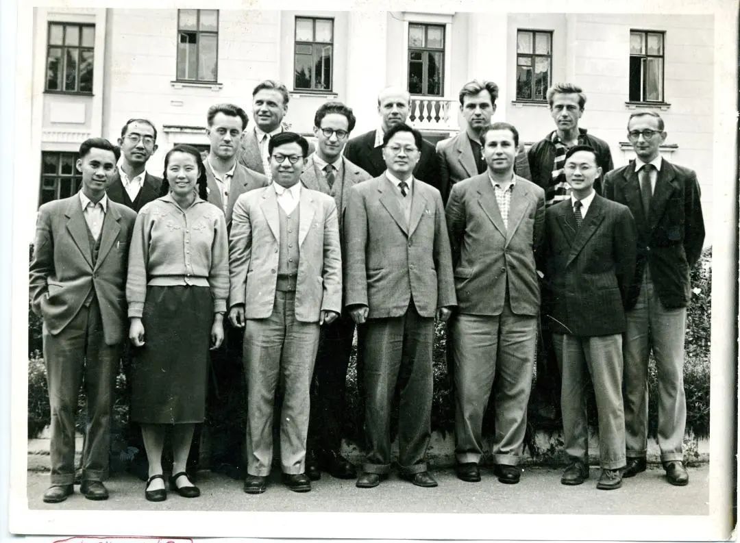 王淦昌在苏联杜布纳联合原子核研究所(一排右三)