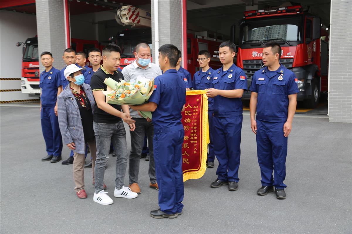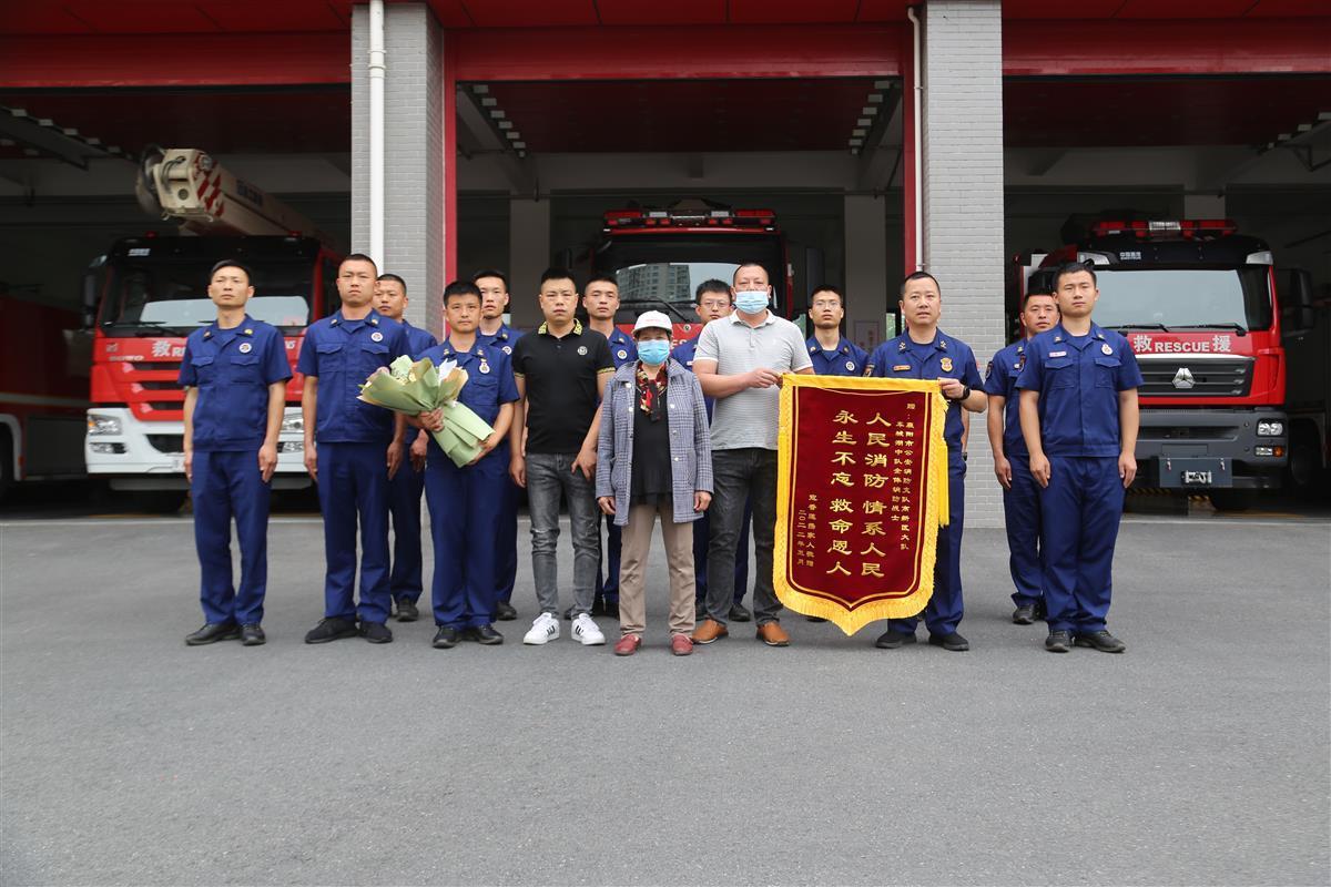 “真的感谢你们的救命之恩,没有你们,我估计再也见不到我妈了……”5月27日上午,寇老太和她的两个儿子带着鲜花、锦旗来到湖北襄阳市高新区车城湖消防救援站,老人的儿子握着消防员赵洋的手,激动地表达感激之情。