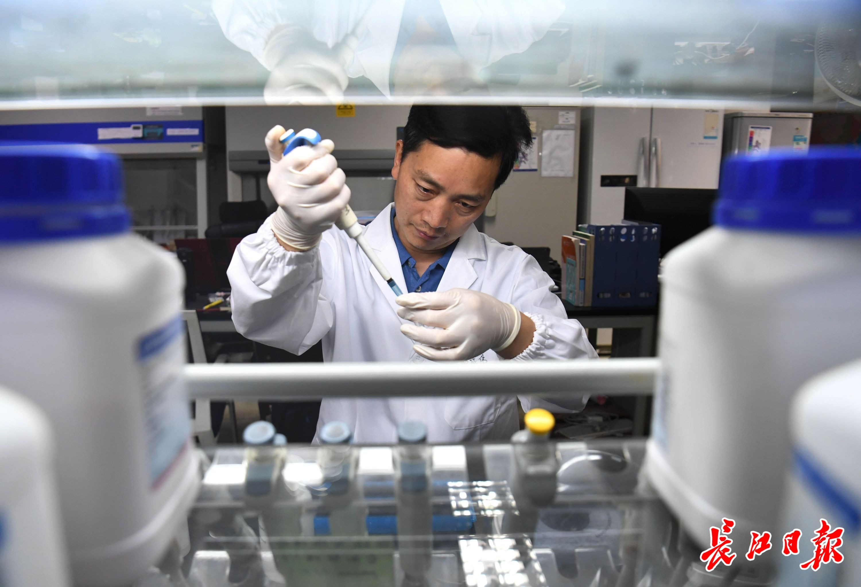 21日,顾泽茂教授在实验室做小龙虾的基因组DNA提取实验。长江日报记者高勇 摄