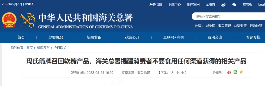 经海关总署核查,玛氏箭牌公司召回的问题产品没有直接对华出口。