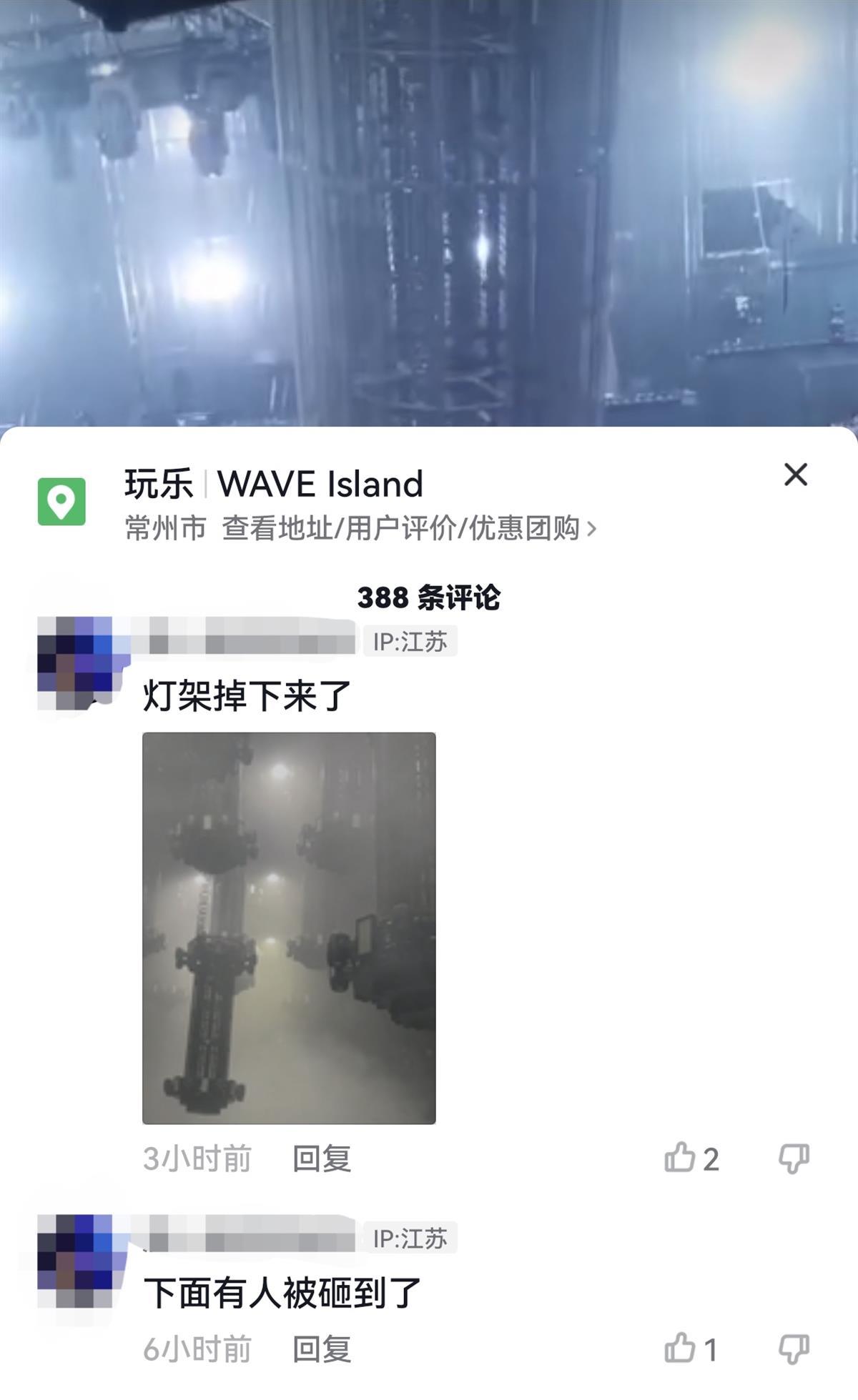 5月29日凌晨,不少网友发视频称,常州市武进区WAVE酒吧出现安全事故,酒吧内一根吊顶灯柱从空中掉落在地,还砸到了人。