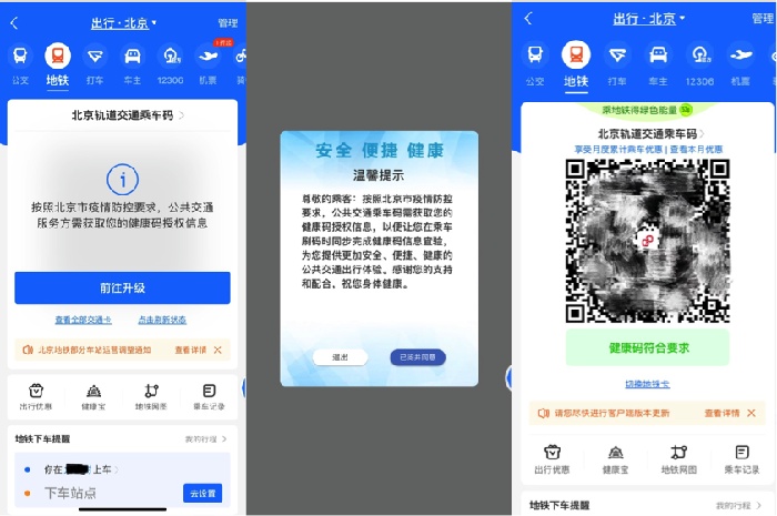 出行前及时升级APP端内乘车码服务,只要完成授权、关联了健康信息,跟以往刷卡刷码进站一样,可进行“无感查验”。