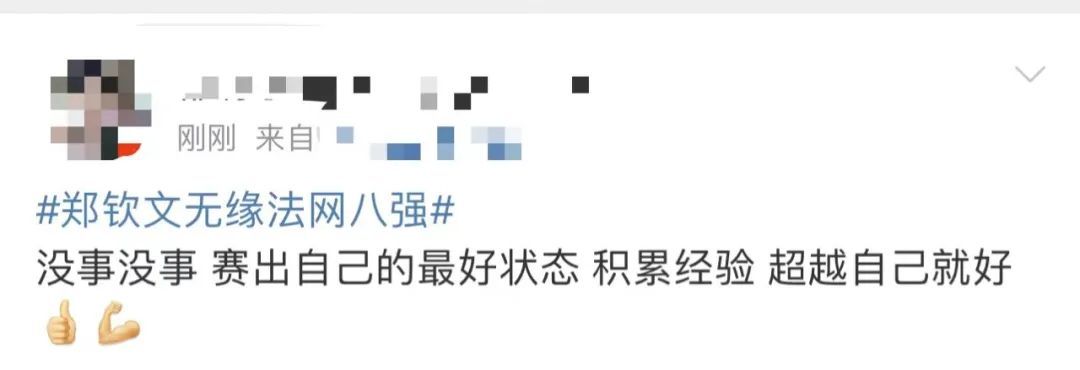 但即便痛经严重困扰着自己,但郑钦文顽强的坚持到了比赛结束,她说很珍惜与世界第一的比赛机会,“不想轻易放弃,还是想站到最后”。