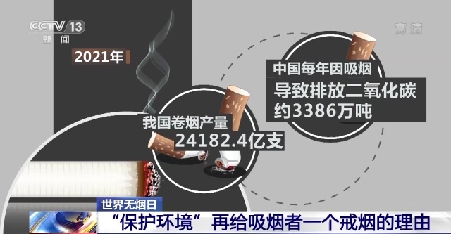 2021年,我国卷烟产量为24182.4亿支。中国每年因吸烟导致排放二氧化碳约3386万吨。卷烟烟头是最常见的丢弃垃圾,在环境中难以降解,是环境微塑料污染的来源之一。我国生态环境部发布《2020年中国海洋生态状况公报》指出,平均每平方公里海滩有塑料垃圾18万个,塑料类垃圾主要为卷烟过滤嘴。人们已经在鱼、鲸等众多海洋生物和鸟类的腹中发现烟头。全球有70%的海鸟和30%的海龟体内都发现有烟头碎屑。烟草在整个生命周期中都会污染地球并损害所有人的健康。