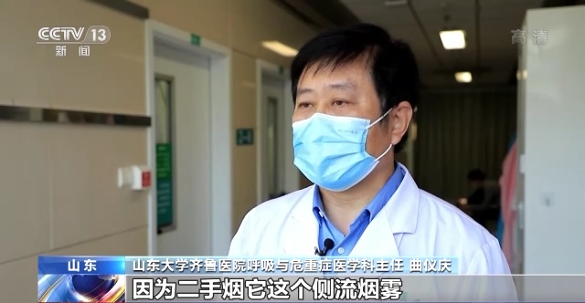 山东大学齐鲁医院呼吸与危重症医学科主任主任医师 曲仪庆:二手烟的危害更大,为什么?因为二手烟它侧流烟雾产生的更多的有害的毒毒性更强的物质,所以并且它颗粒更小,更容易吸入下呼吸道一些,有一些物质可以进入血流,产生更多的一个毒性。