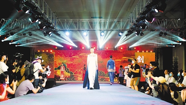 5月31日,首届非遗时装秀在武汉国际会展中心举行,这是2022年“文化和自然遗产日”非遗宣传展示湖北主会场的重要活动之一。 (湖北日报全媒记者 何宇欣 实习生 孙轶凡 摄)